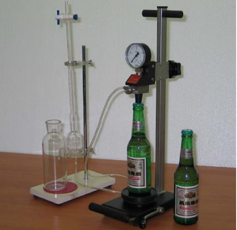 本產品是為啤酒廠家,科研和計量部門等檢測瓶裝啤酒二氧化碳含量和瓶頸空氣體積之用,由平衡裝置和吸收裝置二部分組成。